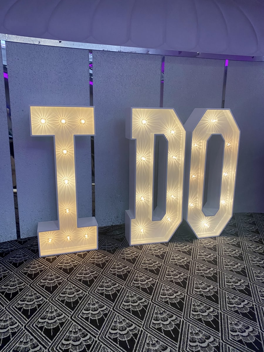 Make your event truly unforgettable with our giant 4ft Light Up "I Do" Letters. Book now and add a touch of magic to your special occasion!