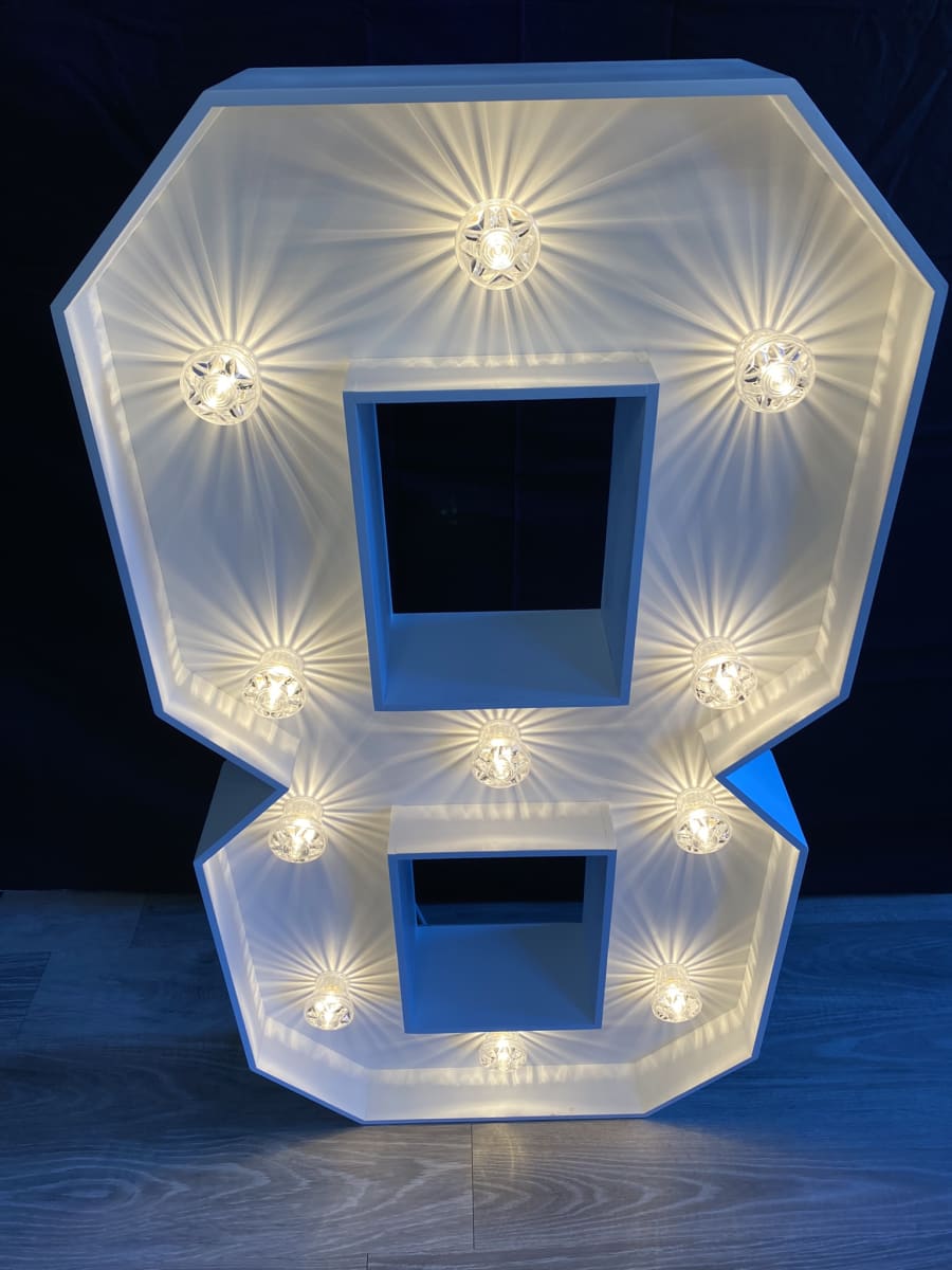 Make your next event truly memorable with our stunning 4ft Light Up Numbers. Perfect for birthday parties, anniversaries, proms, and milestone events, this giant white light up number will add a touch of glamour and sophistication to any occasion.