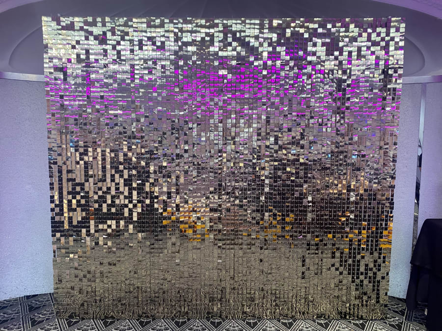 Looking to add a touch of glamour and sparkle to your next event? Our Gold Sequin Shimmer Wall is the perfect choice! Standing at an impressive 7ft high by 8ft wide, this stunning photo backdrop is sure to create a wow factor that will leave your guests in awe.