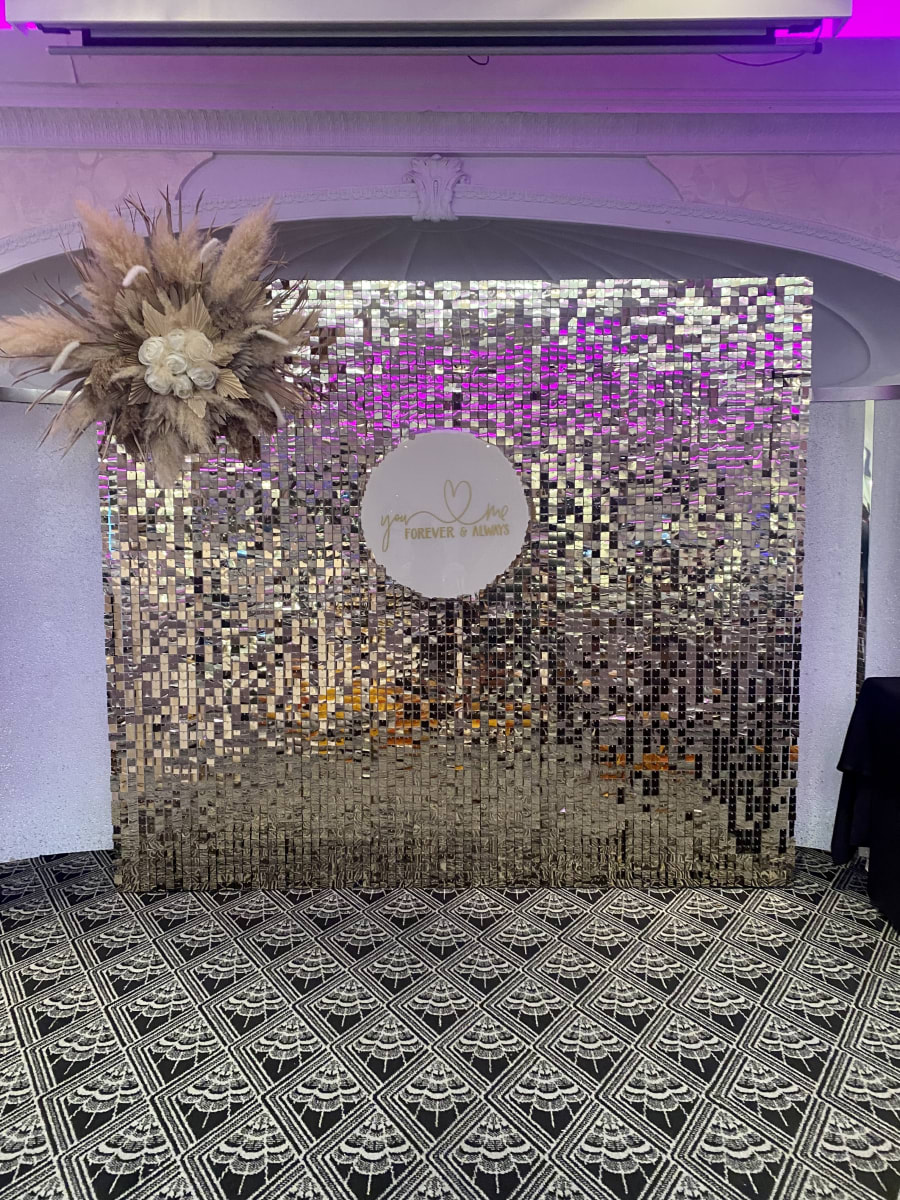 Balloons, floral displays or personalised signs can be added to the sequin wall to make that perfect display (additional costs will apply)