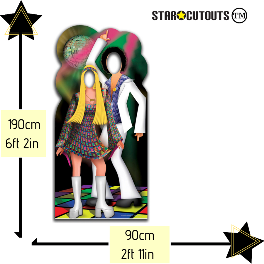 The Cardboard Cut out of Disco Couple Stand- In measures 190cm tall and is sure to add wow factor to any home, office, event or party!