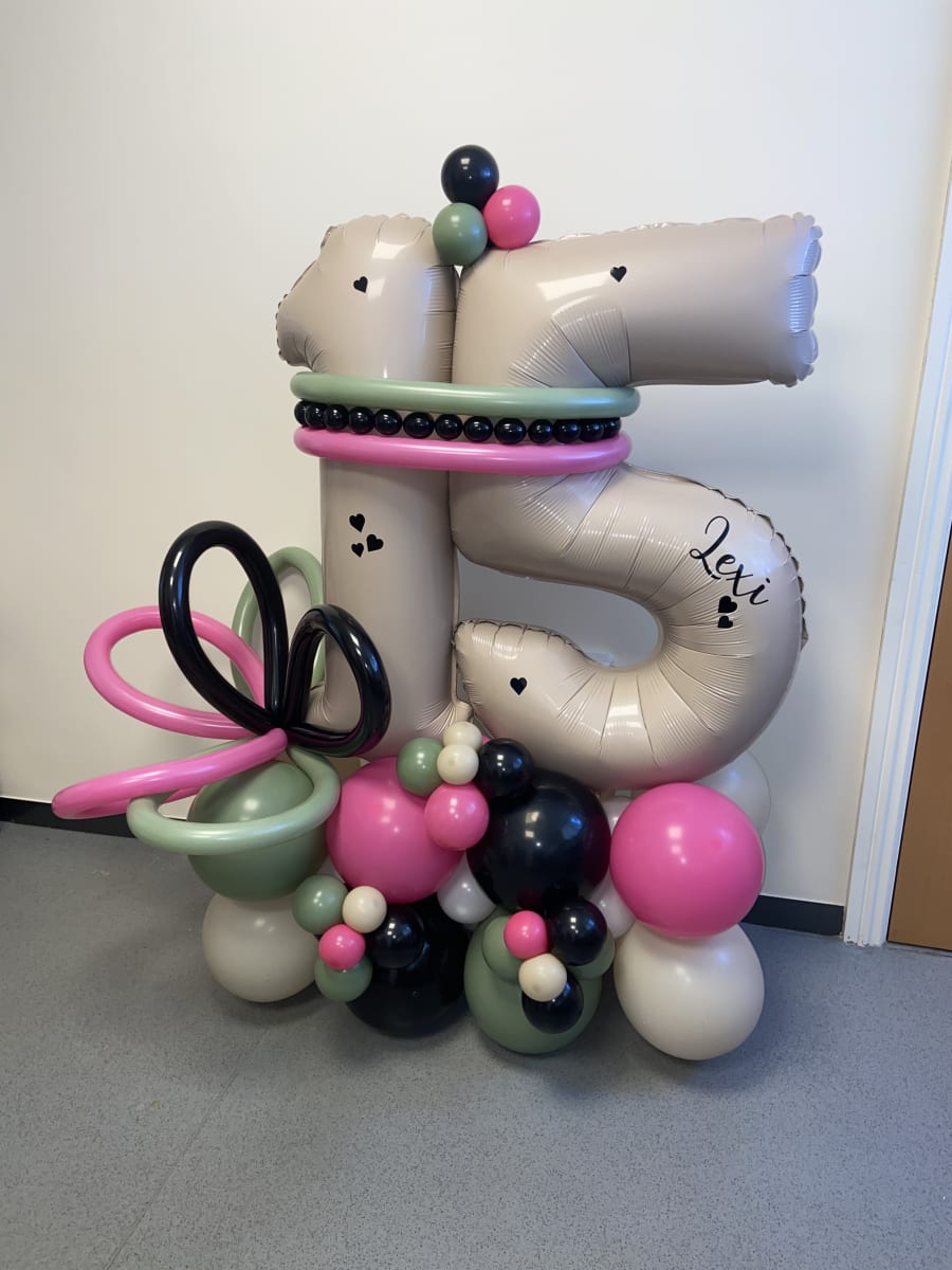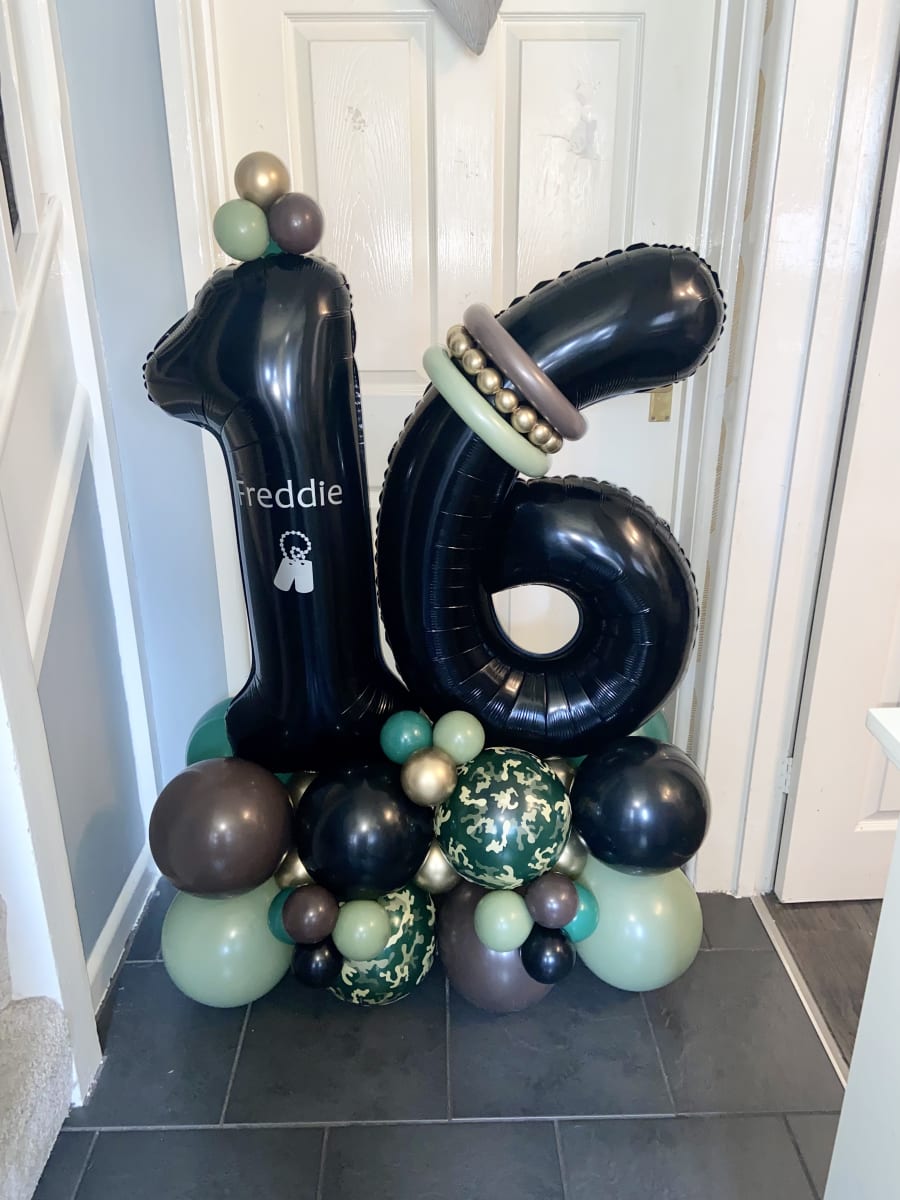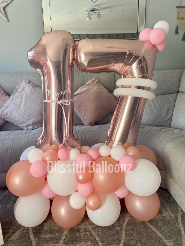 34'' air filled numbers of your choice on a bed of latex air filled