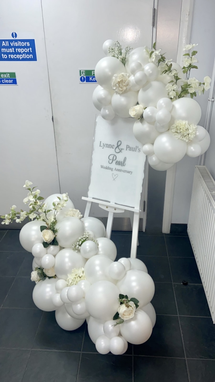 Personalised welcome easel With an organic Balloon Garland going down one side