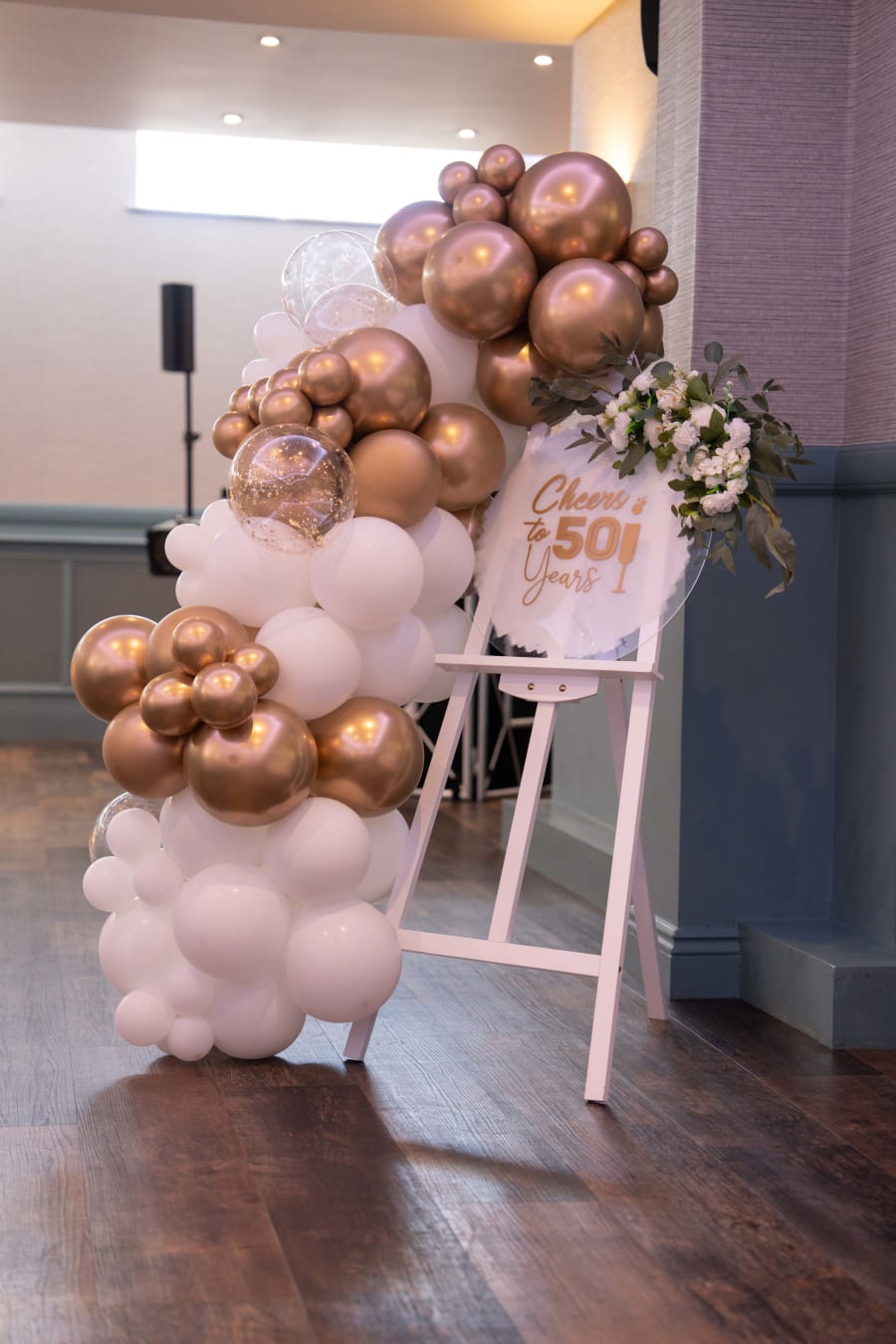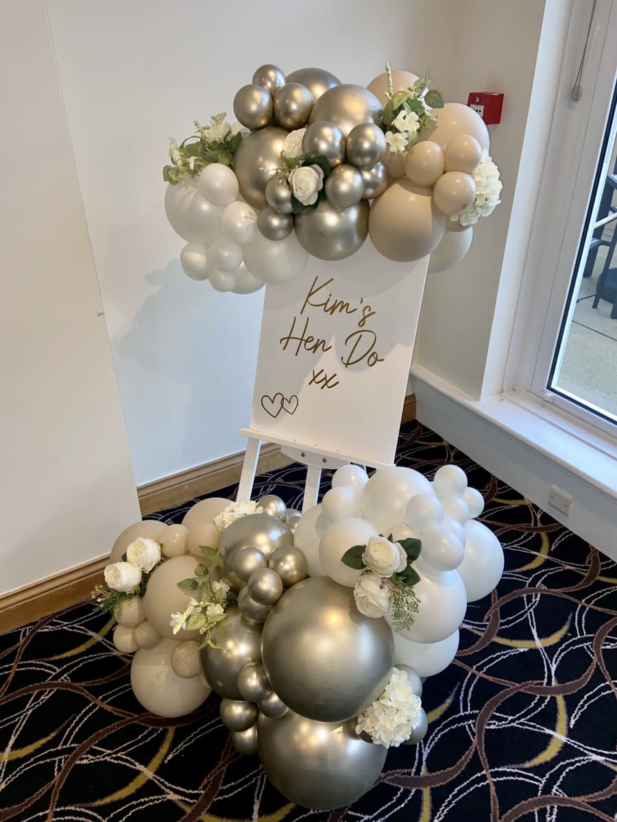 the balloon Garland going around the easel can be adjusted to different lengths please don’t hesitate to contact me to get a quote 😊