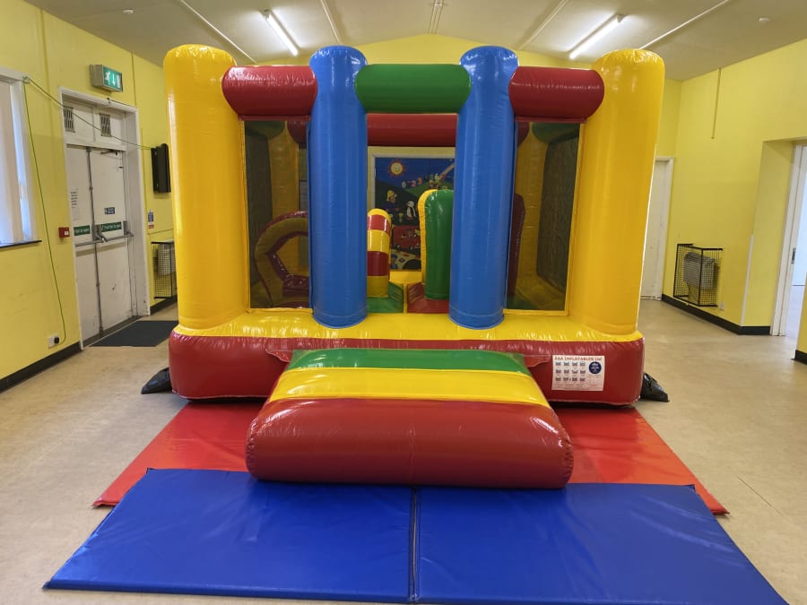 Our multi coloured activity bouncy castle in Bournemouth, Poole, and Christchurch offers versatility and convenience, making it a perfect choice for both indoor and outdoor venues. With its low height design, it's suitable for most hall spaces, ensuring that your little ones can bounce around safely, come rain or shine.