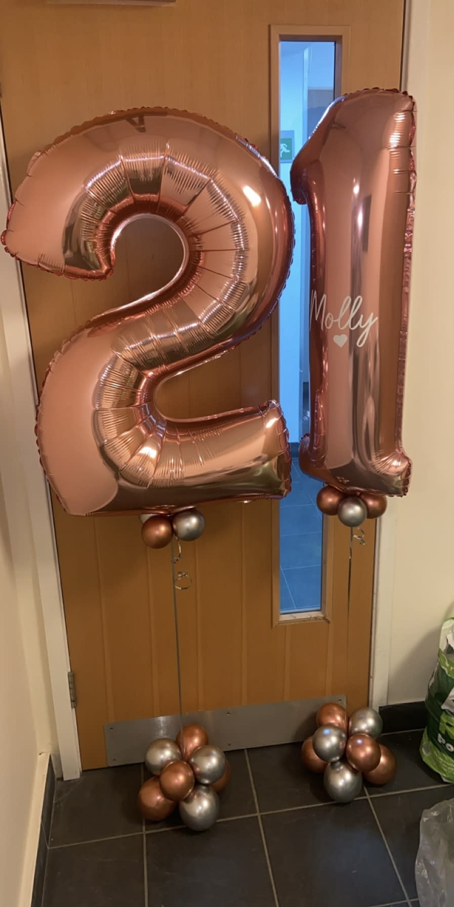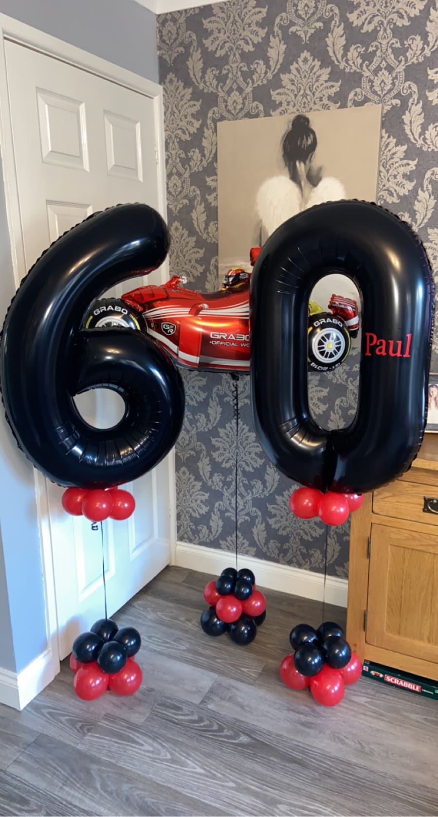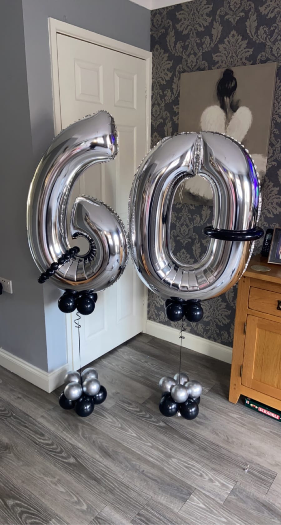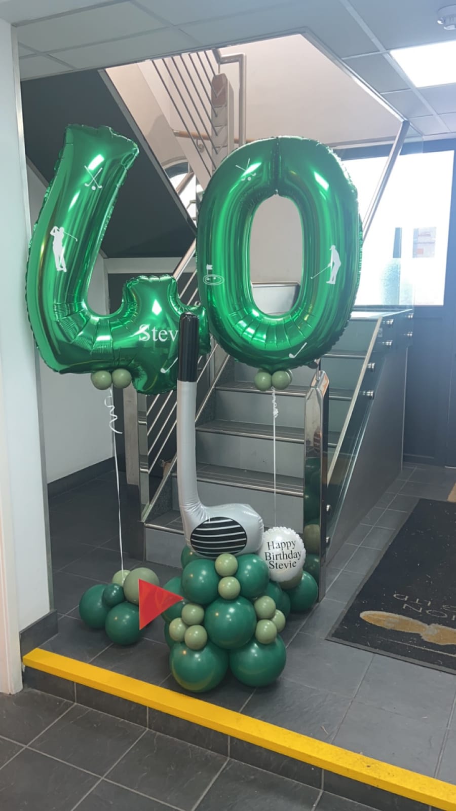 Helium filled numbers of your choice on a small weighted cluster of latex air filled balloons to give it that luxury look.