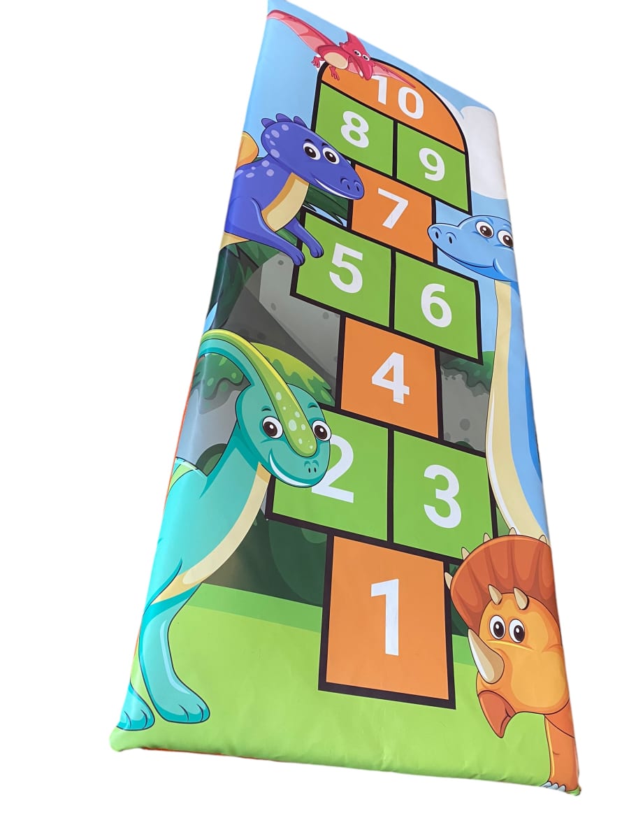 Our hopscotch mat measures approximately 5ft high and 2ft wide, offering ample space for children to leap, hop, and skip with glee. Safety is paramount, which is why this mat is generously filled with 2 inches of soft foam. This cushioning ensures every fall is absorbed gently, keeping little adventurers safe as they explore the wonders of hopscotch play.