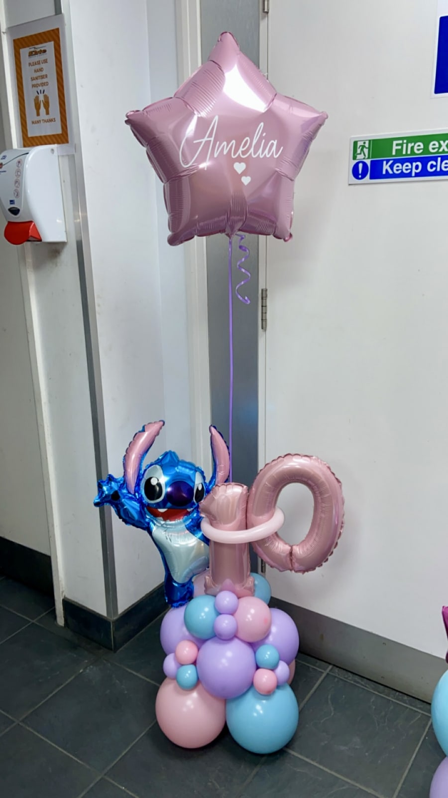 Air filled 16” numbers and a colour coordinated personalised star foil balloon on a bed of latex air filled balloons - although this is a mini version it is still an impressive size that makes a huge impact.