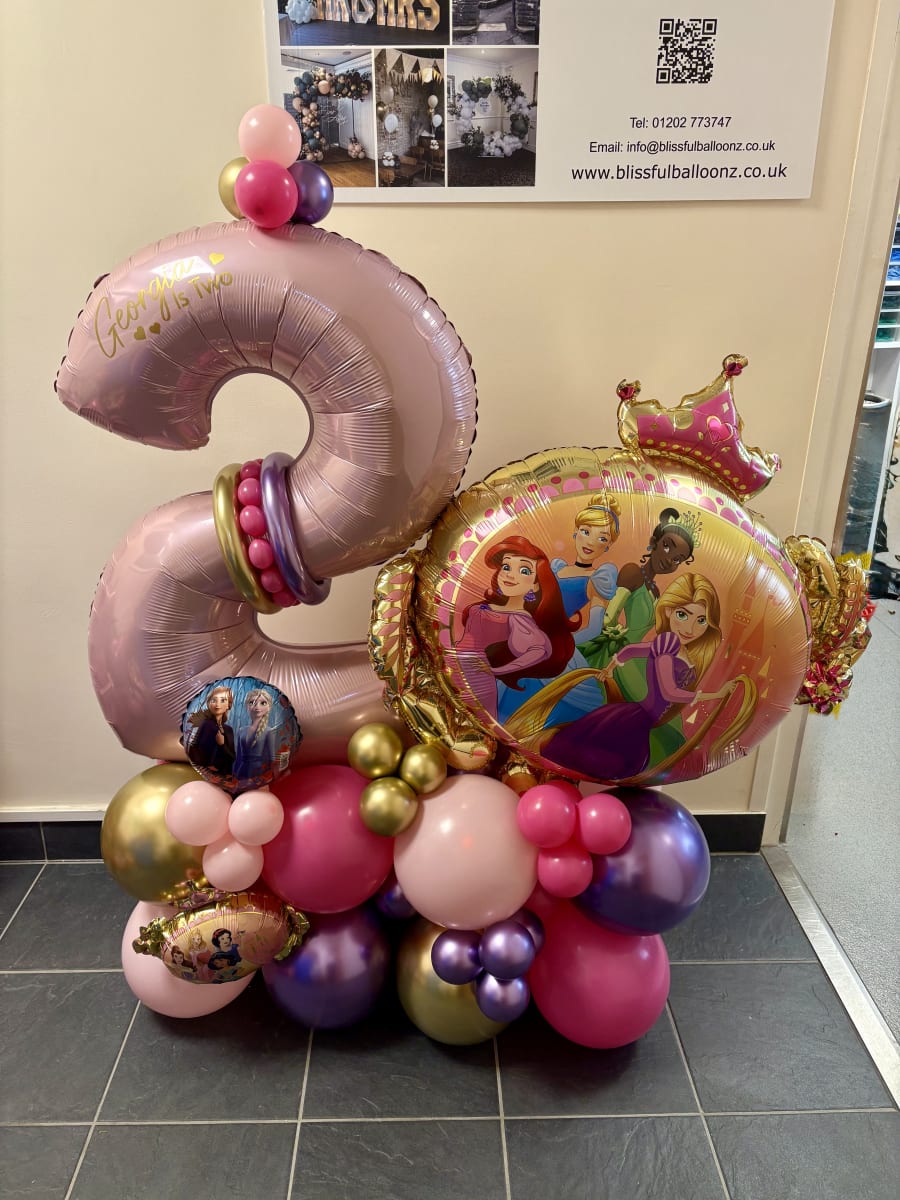 Air filled number and a large unicorn foil balloon on a bed of latex air filled balloons