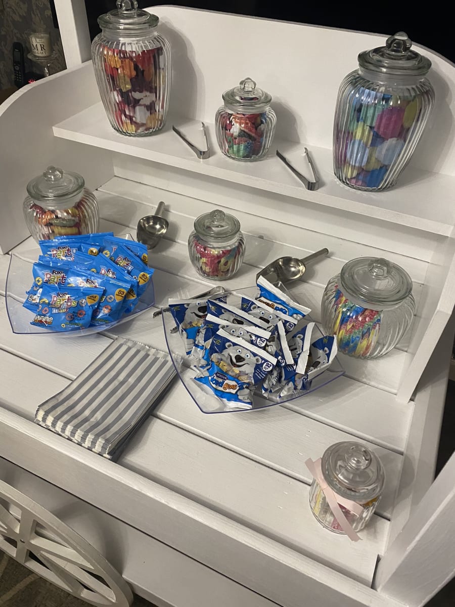 Included in the hire: Cart, Sweet Jars, Bowls, Tongs, Scoops, Delivery Set up & Collection