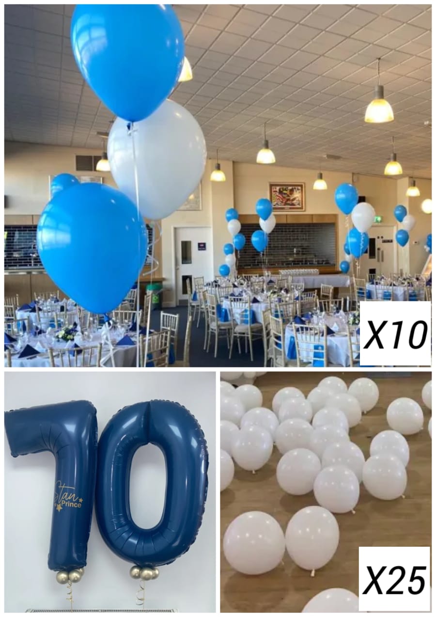 - 10x helium bouquets , these can all be for tables or floor standing or a mix of both, please advise in the additional notes section at checkout, (if no preference is given they will be automatically made for table height)