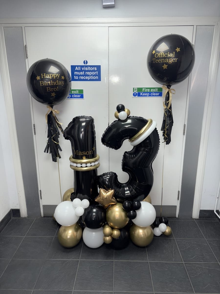 The perfect combo for a birthday celebration. Double number display with 2 helium filled orbz with colour co ordinated tassles & personalised to suit.