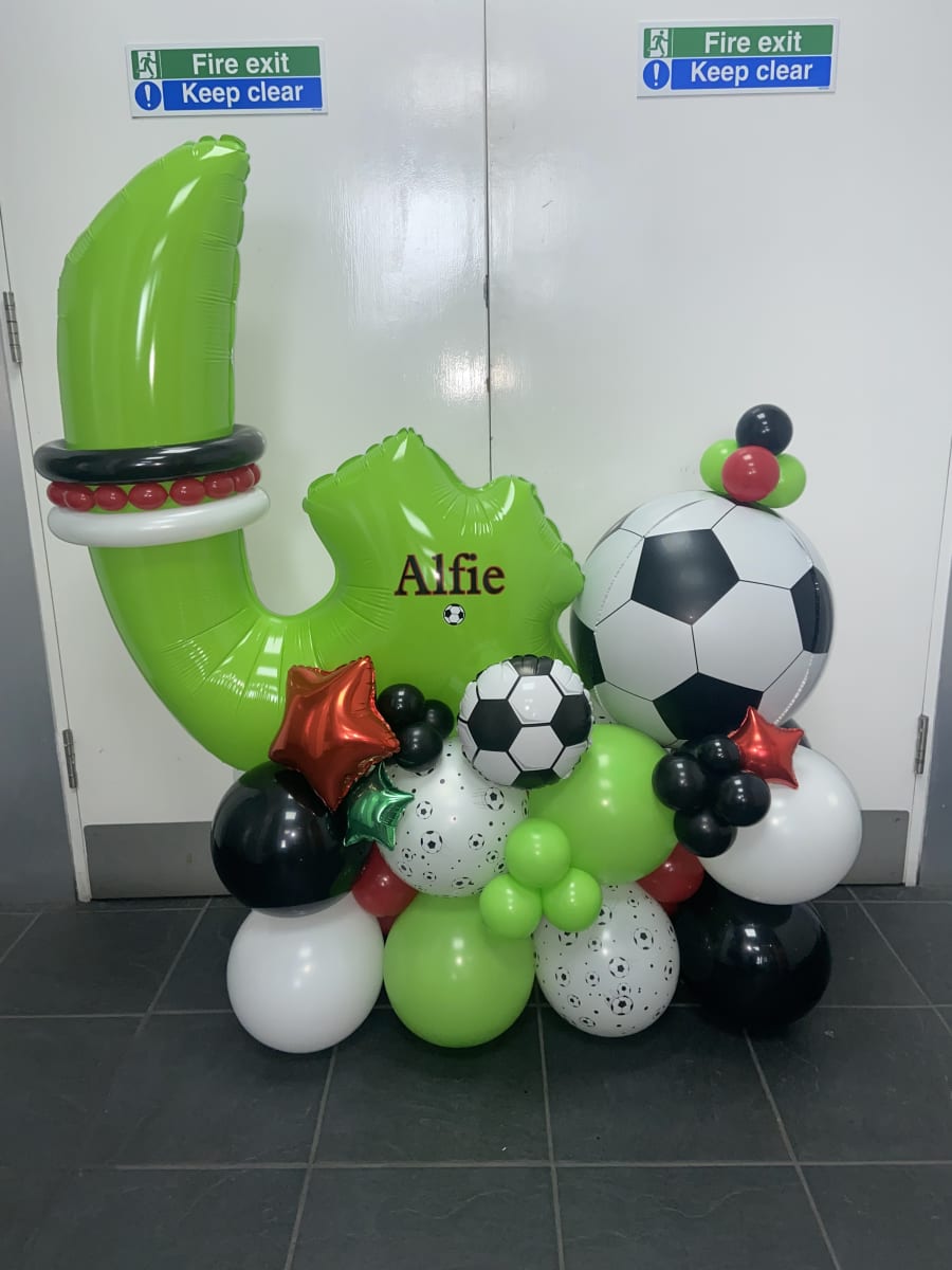 Air filled number and a football orbz foil balloon on a bed of latex air filled balloons