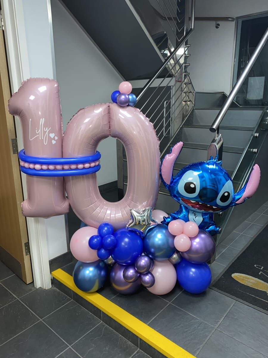 air filled numbers of your choice teamed with a large character foil balloon to match your theme all on a bed of latex air filled balloons.