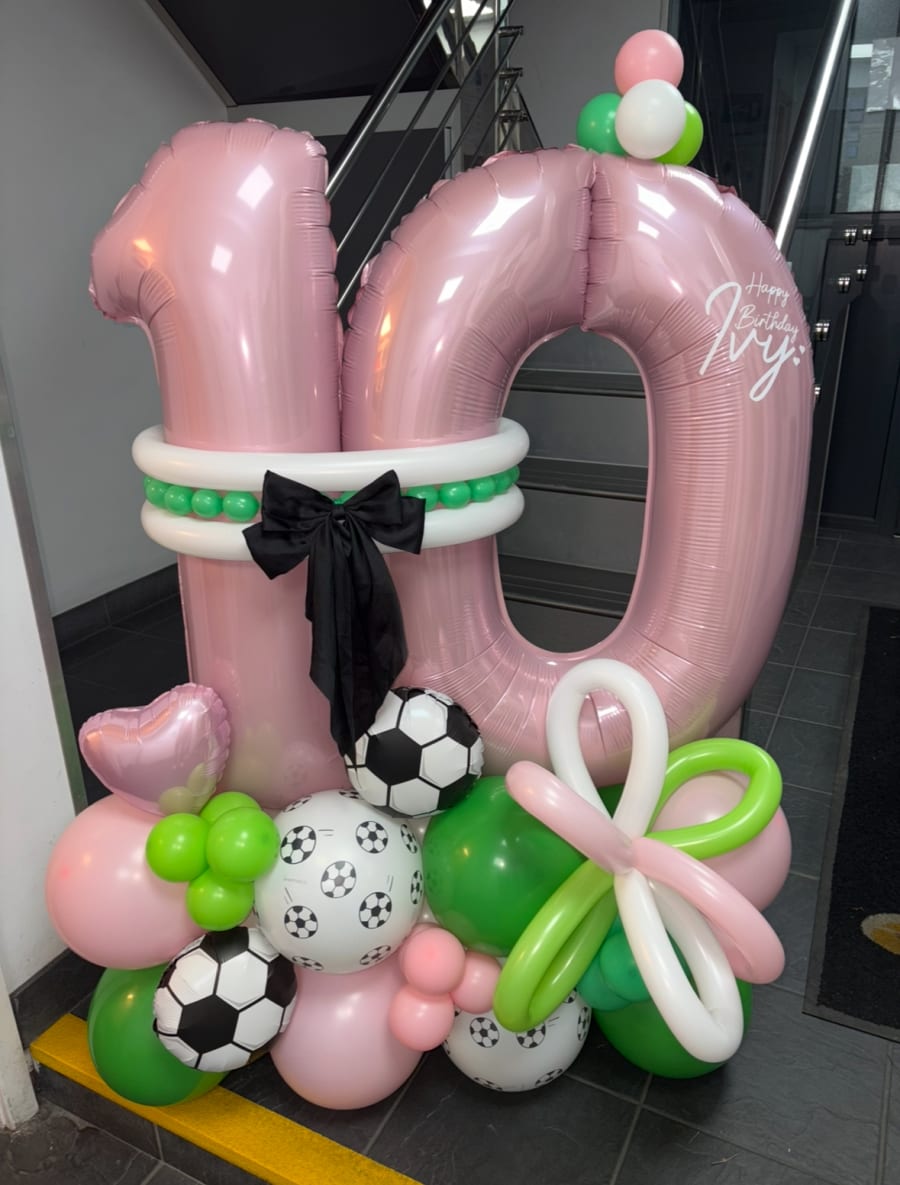 Air filled numbers of your choice on a stack of latex air filled balloons