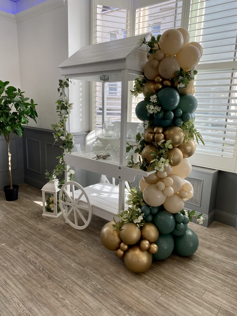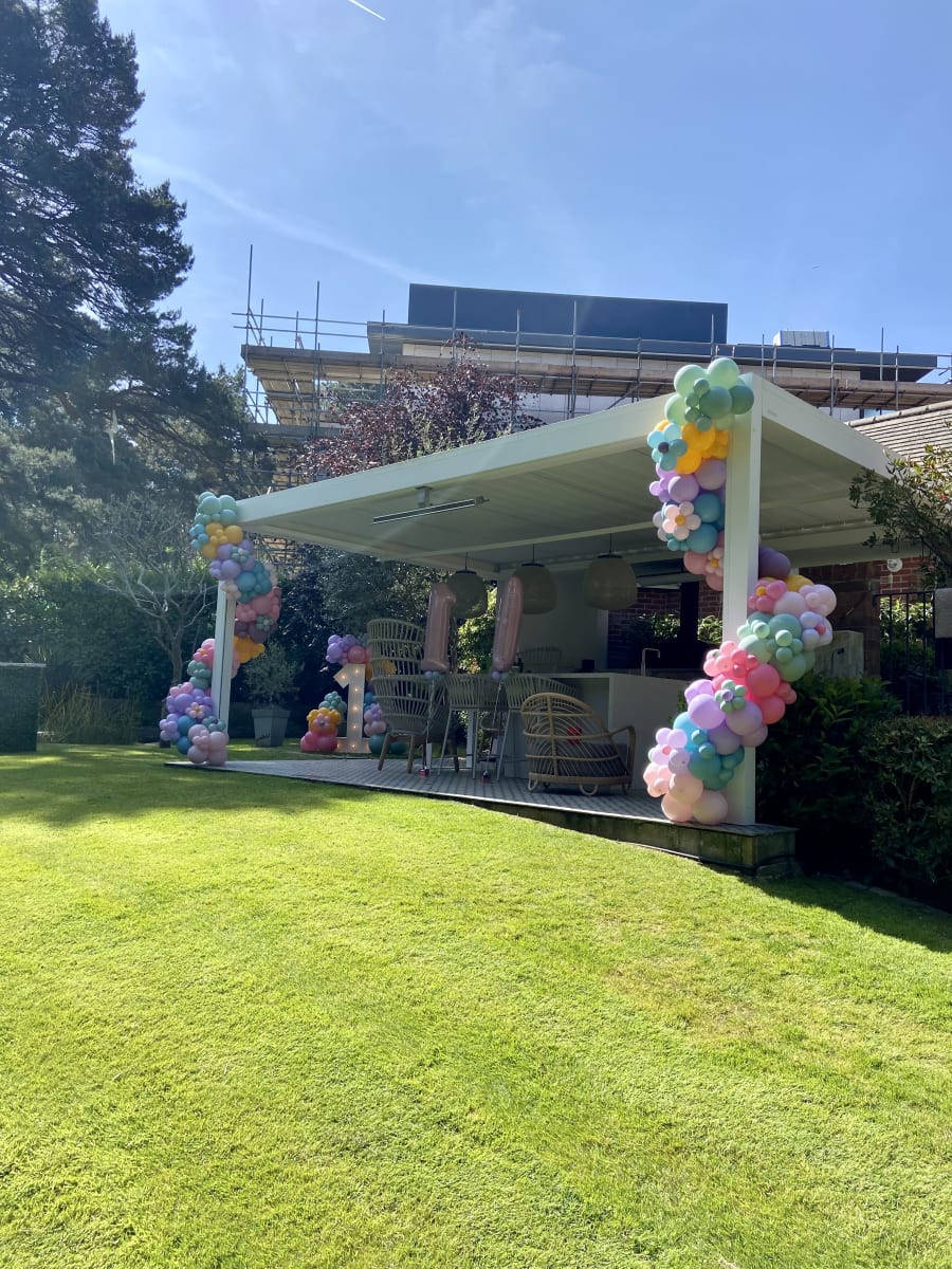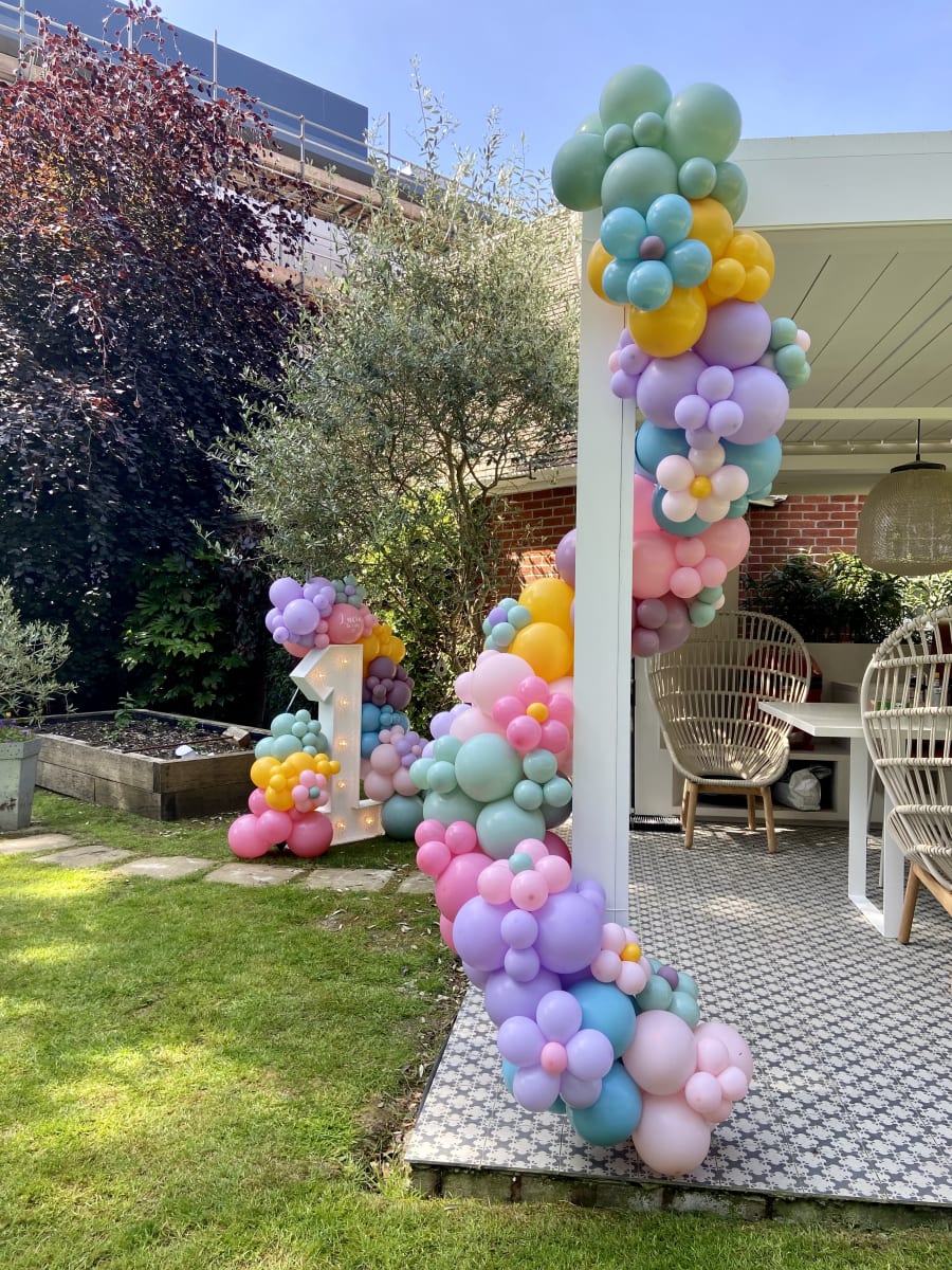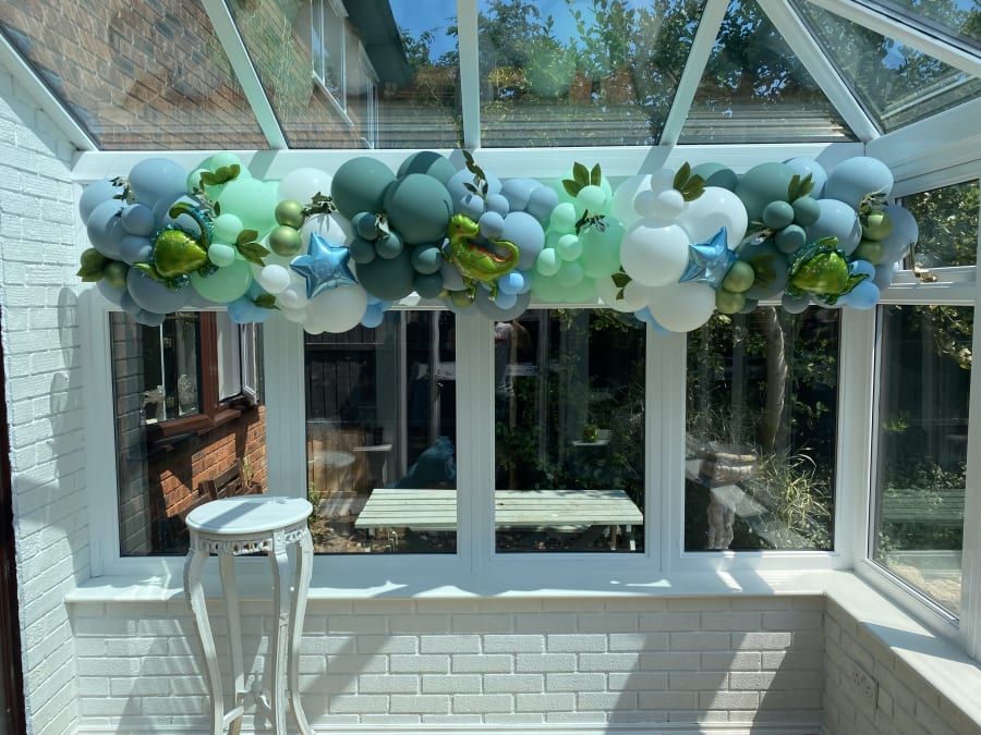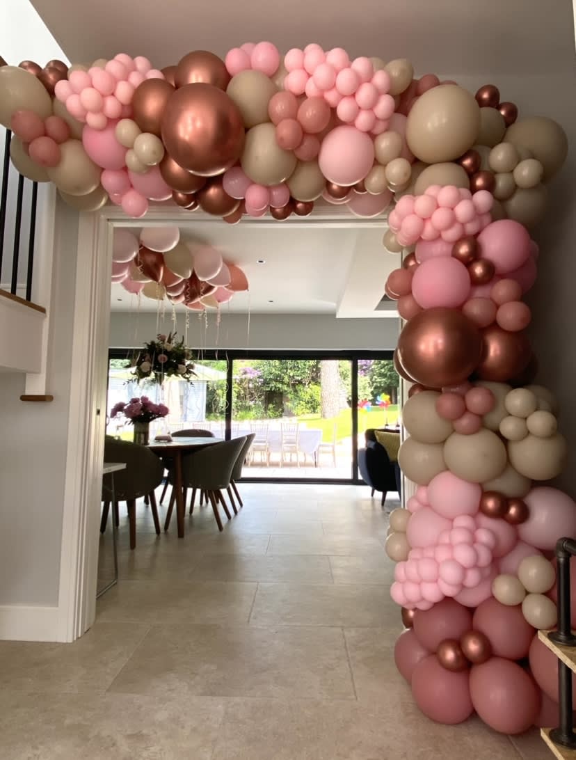 Our organic balloon garlands can be made in any size, the one pictured in the main photo is 5 metres in total and was made to go around a door frame.