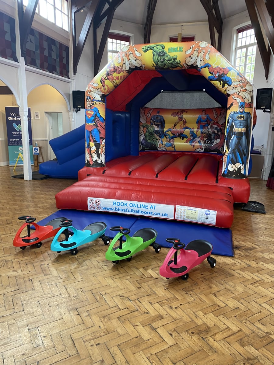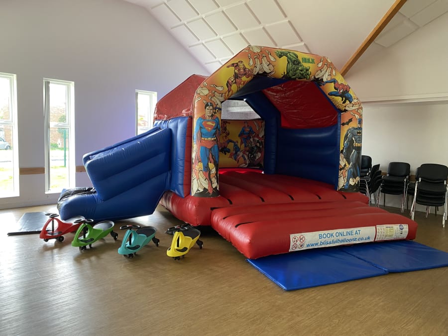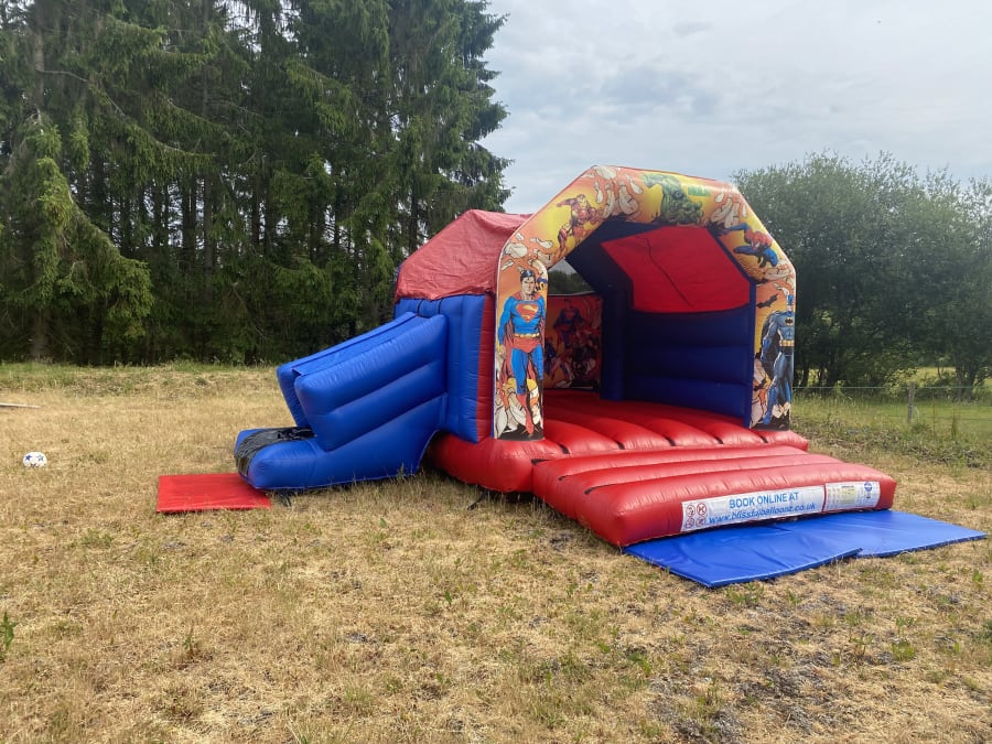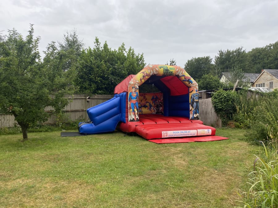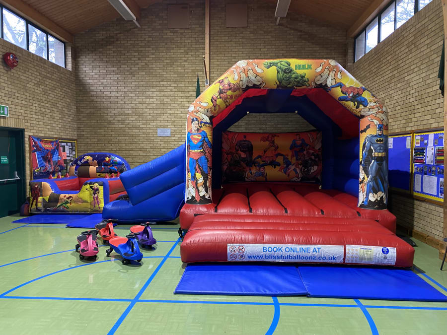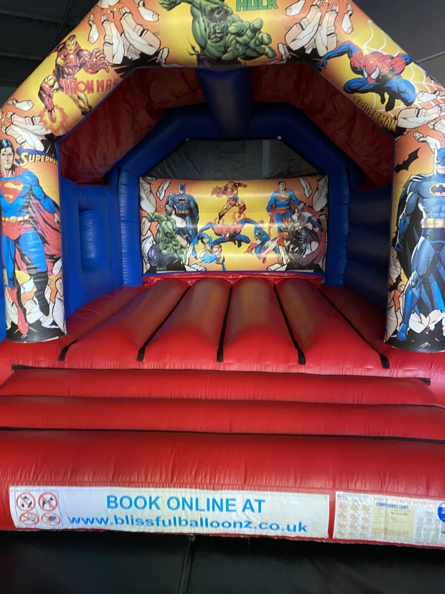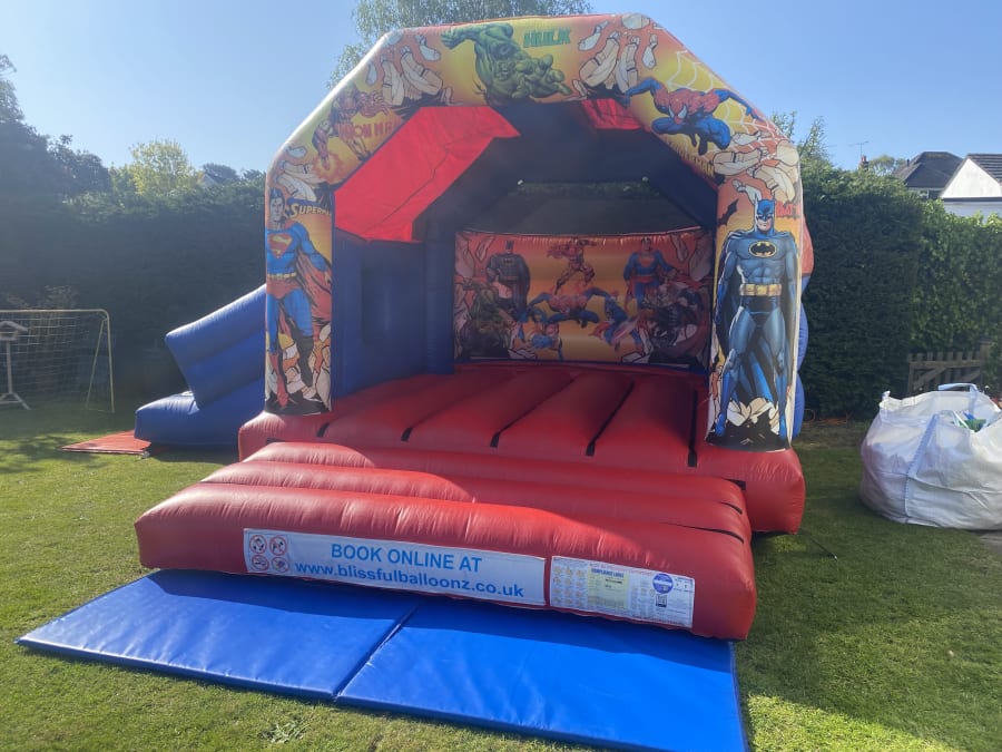 Bring Adventure to Your Event with Our Super Hero Themed Bouncy Castle with Slide