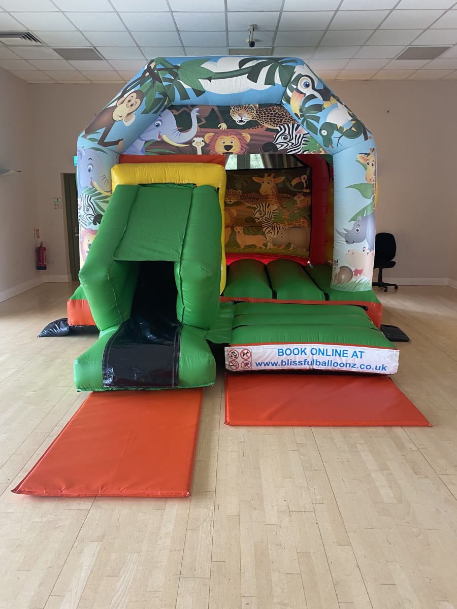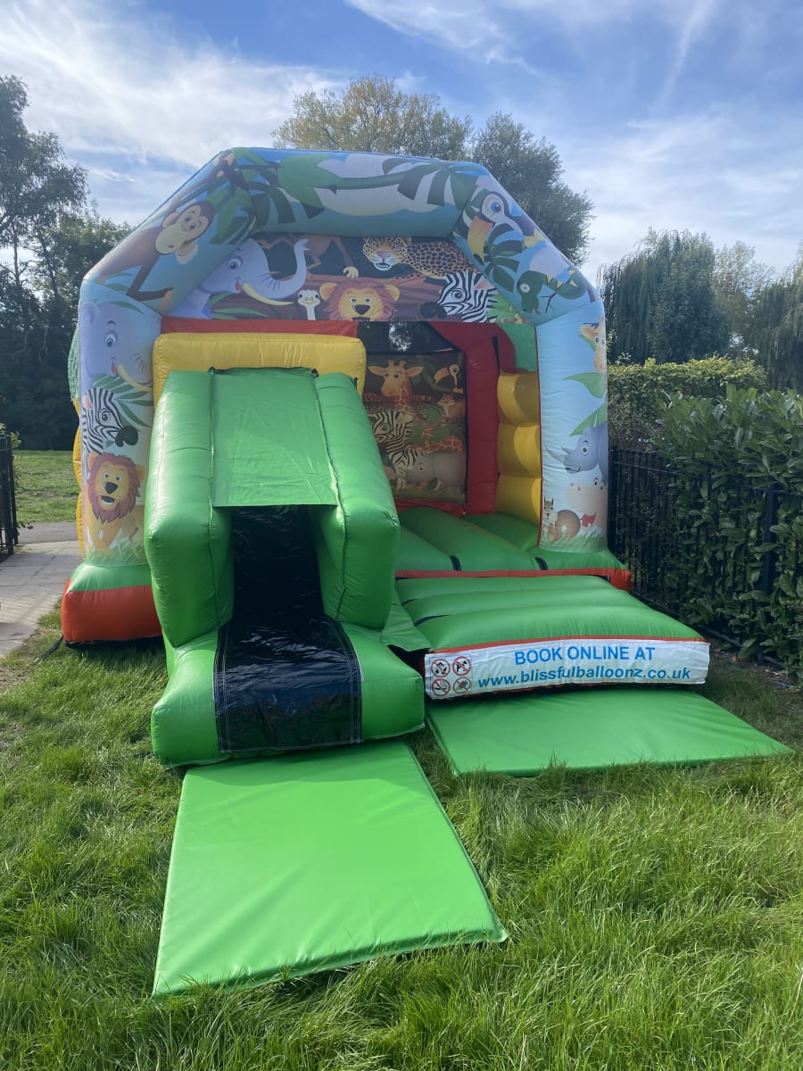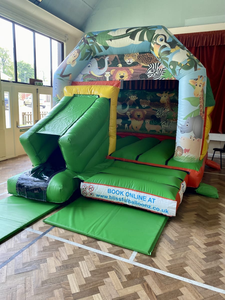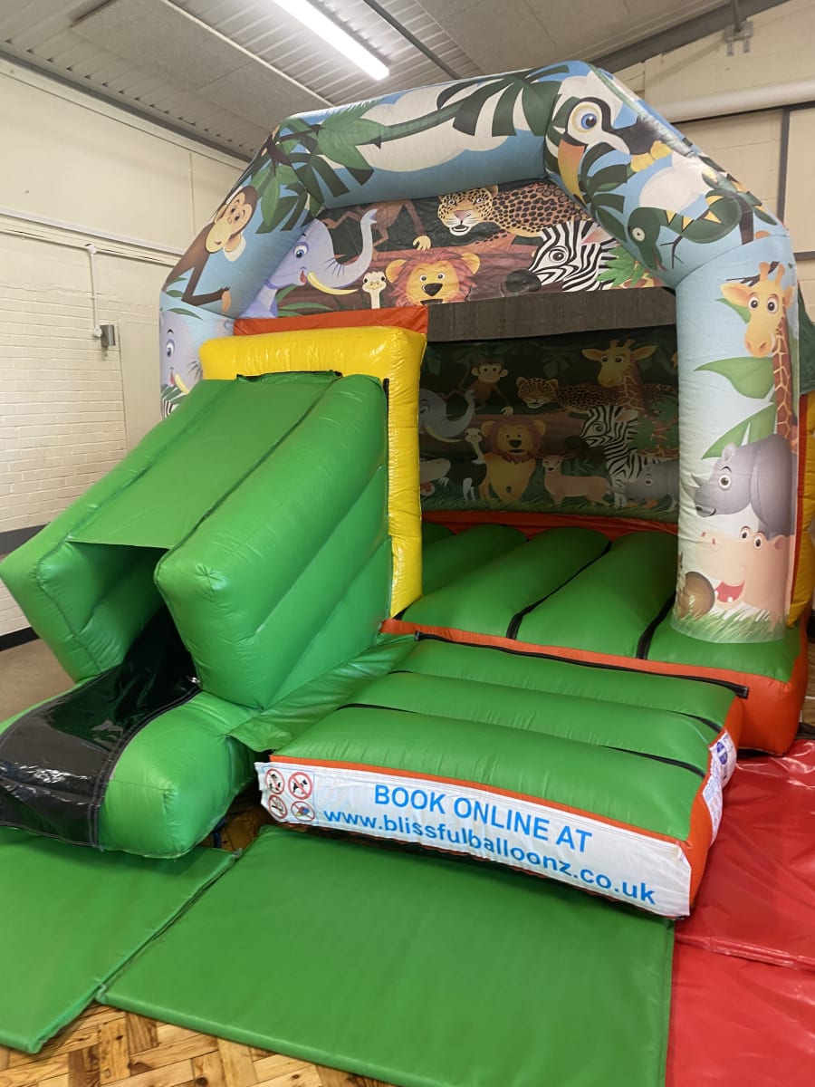 “Jungle / Safari Themed Bouncy Castle with Slide”
