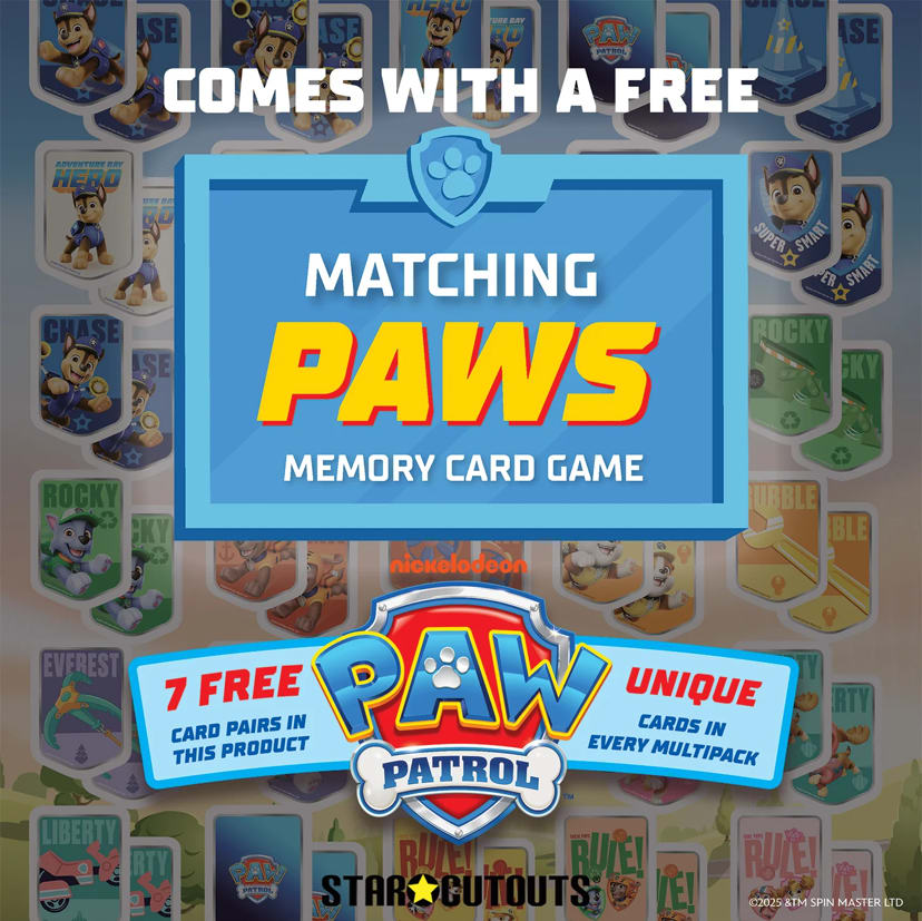 Each Paw Patrol Multi-Pack Cut Out comes with a set of seven unique matching pairs cards designed for fun-filled family activities. These cards encourage interactive play, engaging children in games that enhance memory and matching skills. Collect all four multi-packs to complete the full set of 28 unique cards, bringing endless fun and excitement to your family gatherings.