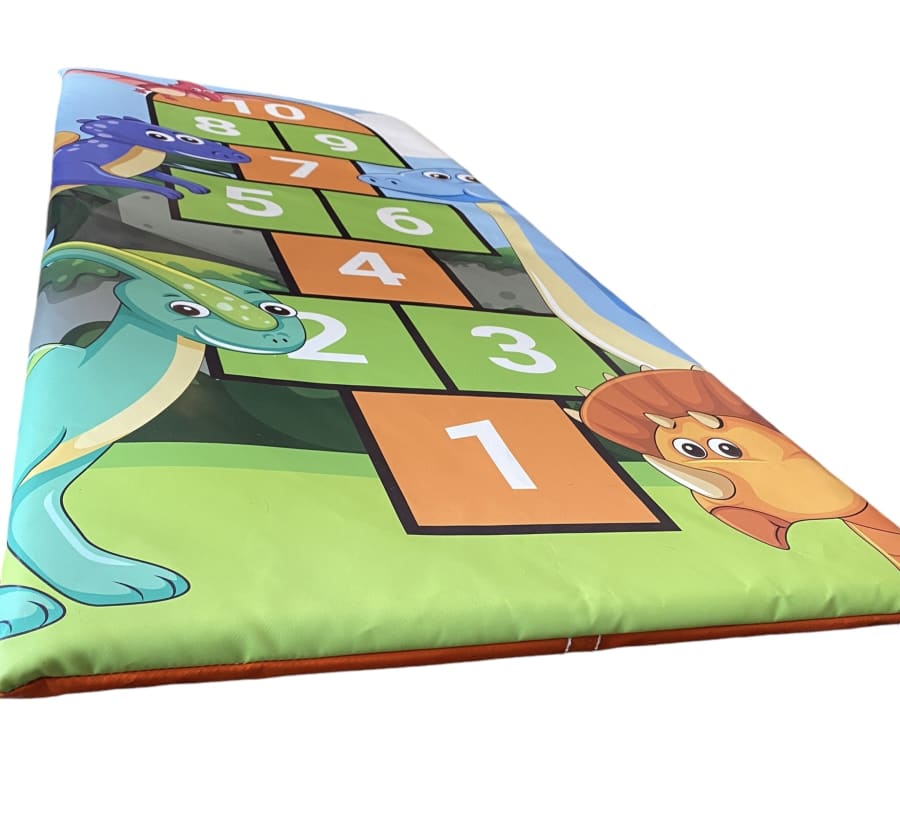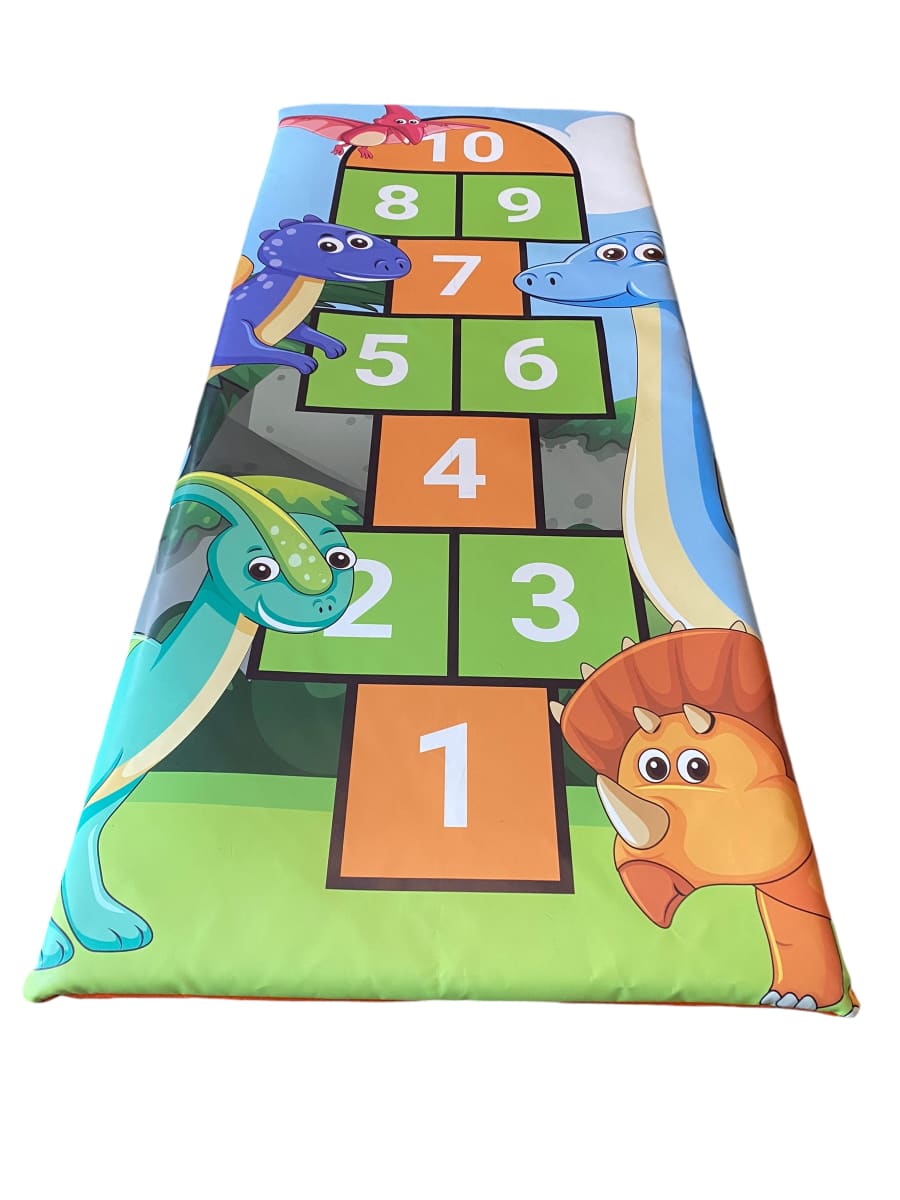 Our hopscotch mat measures approximately 5ft high and 2ft wide, offering ample space for children to leap, hop, and skip with glee. Safety is paramount, which is why this mat is generously filled with 2 inches of soft foam. This cushioning ensures every fall is absorbed gently, keeping little adventurers safe as they explore the wonders of hopscotch play.