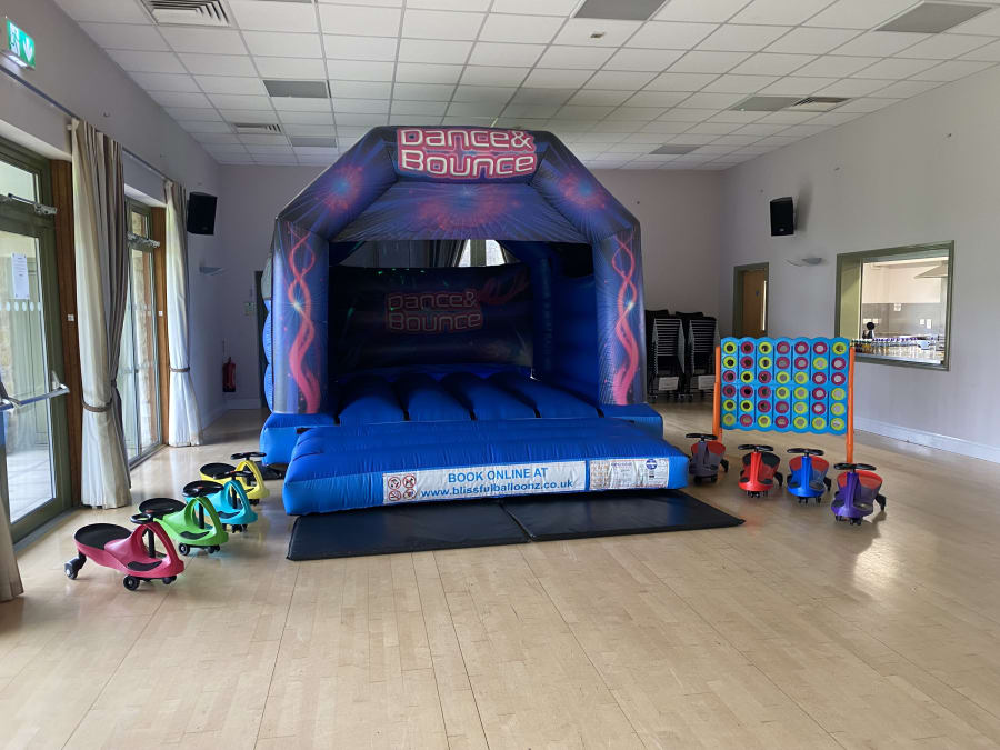 Harmans Cross Village Hall can easily accommodate a bouncy castle soft play package and a large photo backdrop sailboard balloon display for your party or celebration.