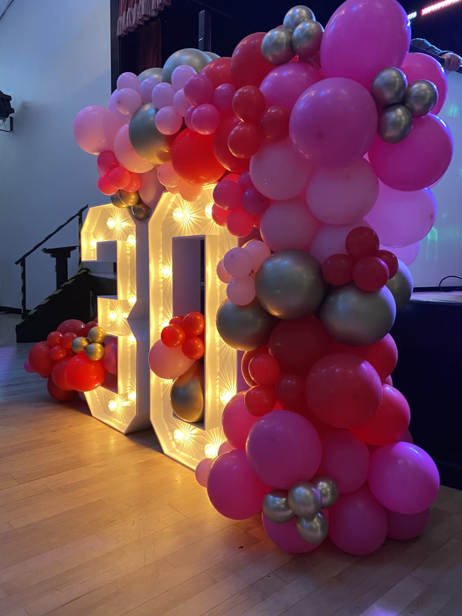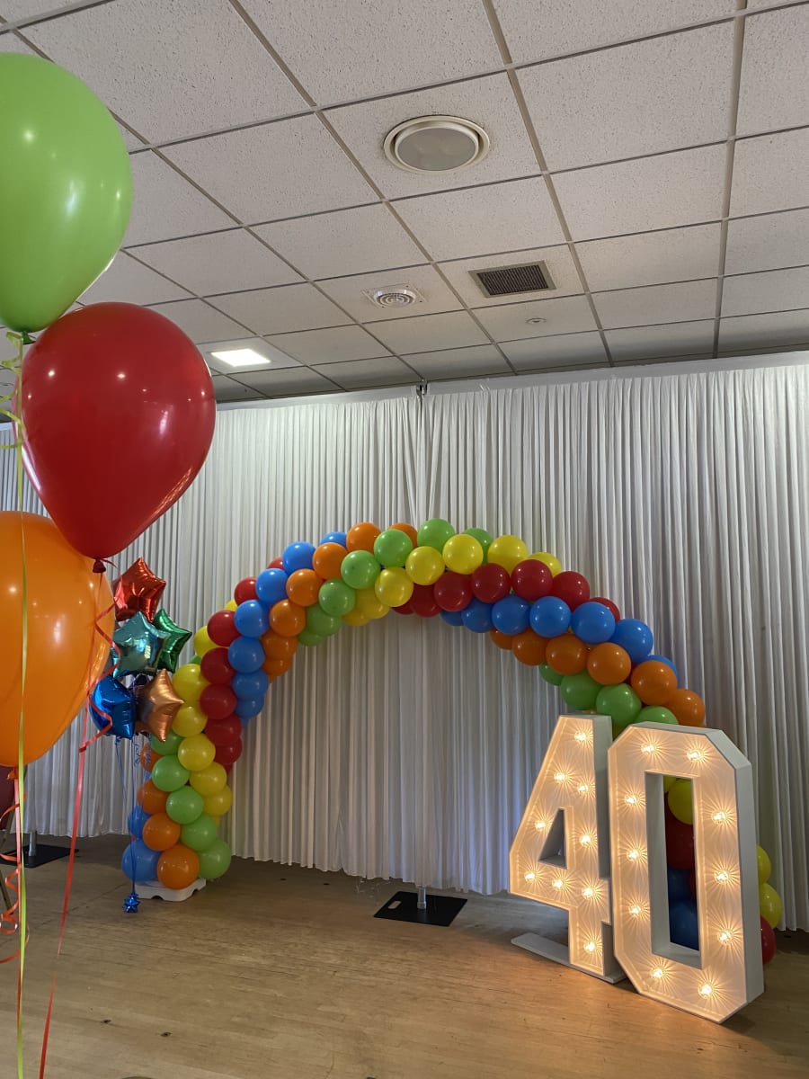 We have everything you need to make your party a great success from huge balloon displays, small balloon displays, 4ft light up numbers and letters, soft play, bouncy castles, shimmer walls, sweet cart and so much more.......