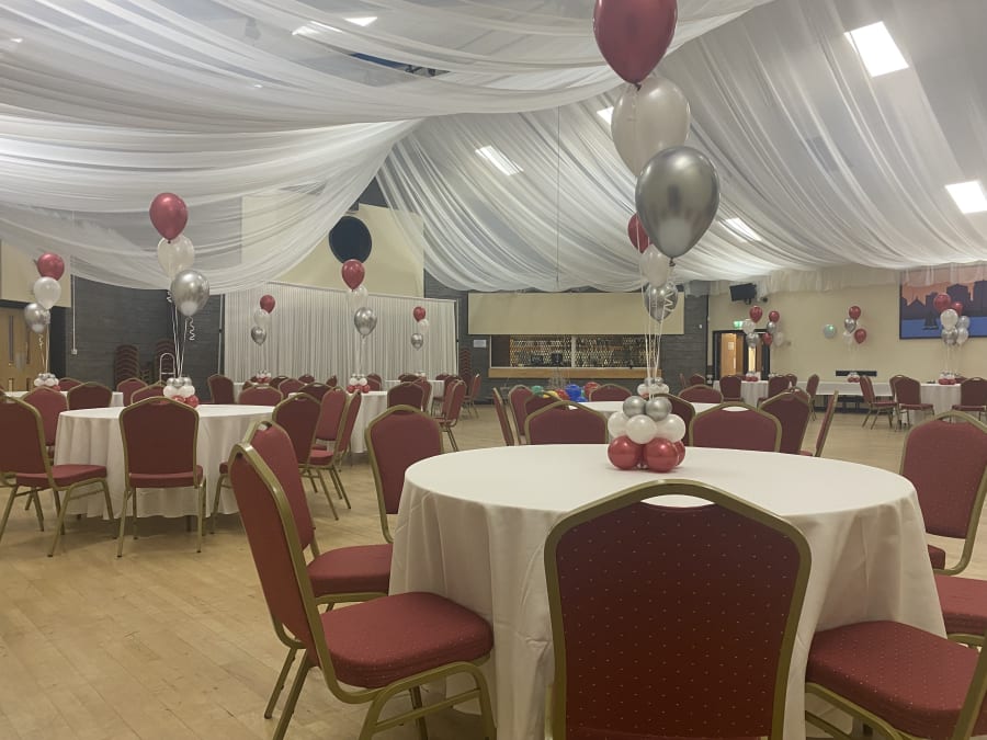 The Hamworthy Club can easily accommodate a bouncy castle soft play package and a large photo backdrop sailboard balloon display for your party or celebration.