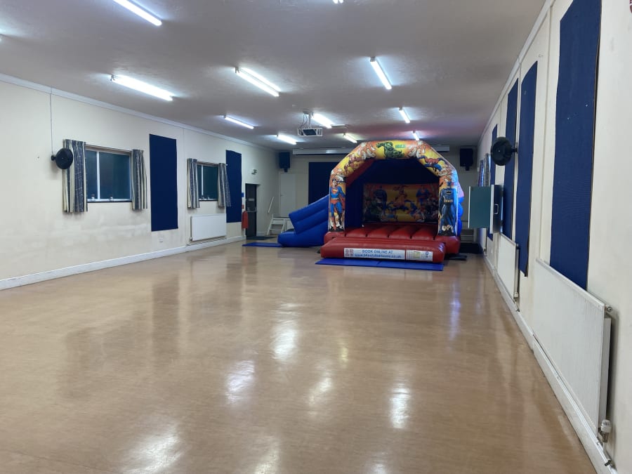 Scroll down to see which of our Bouncy Castle's and some other items that fit in this hall to save you the stress of getting the tape measure out!