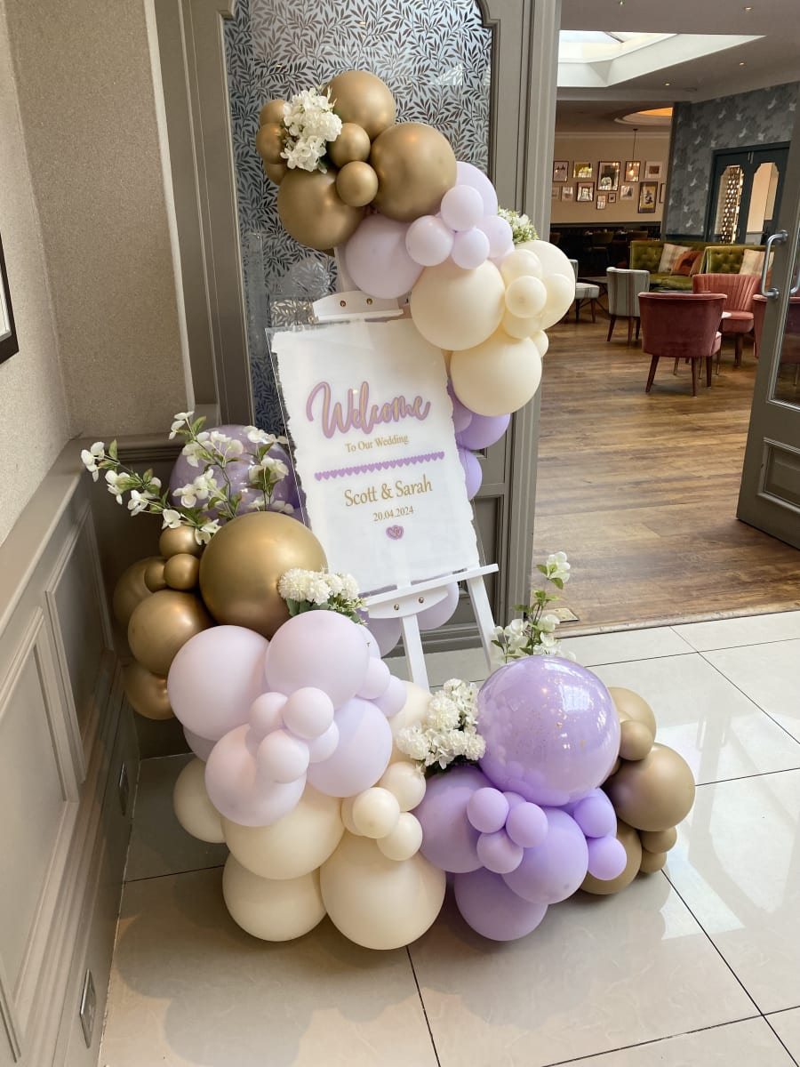 Personalised welcome easel With 2.5 metres of organic Balloon Garland
