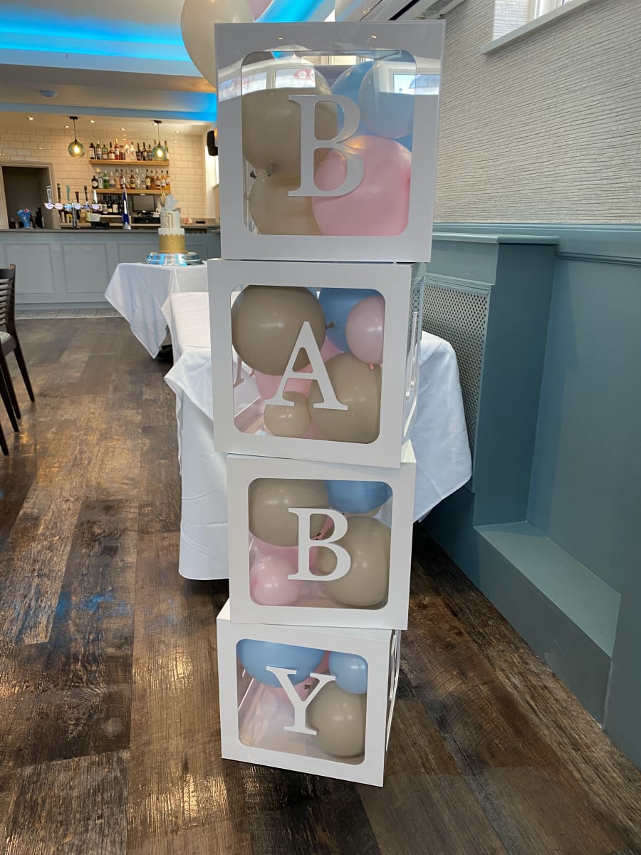 Our beautiful acrylic balloon filled Baby Blocks will create a great picture opportunity at any Baby themed party!