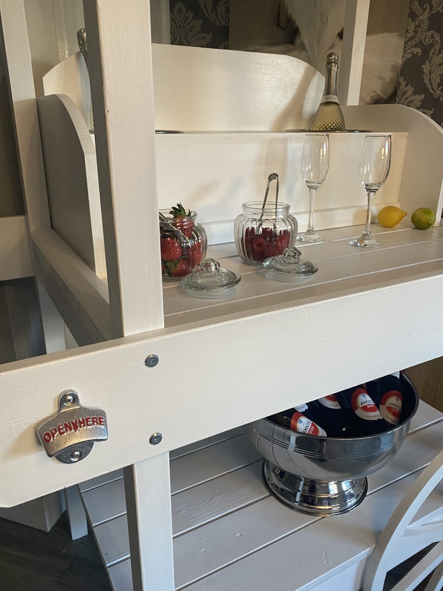 Included in the hire: Cart, Flutes, Fruit Jars, Tongs, Ice Buckets, Bottle Opener, Delivery Set up & Collection