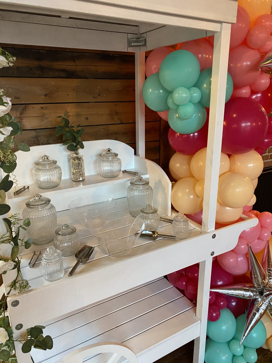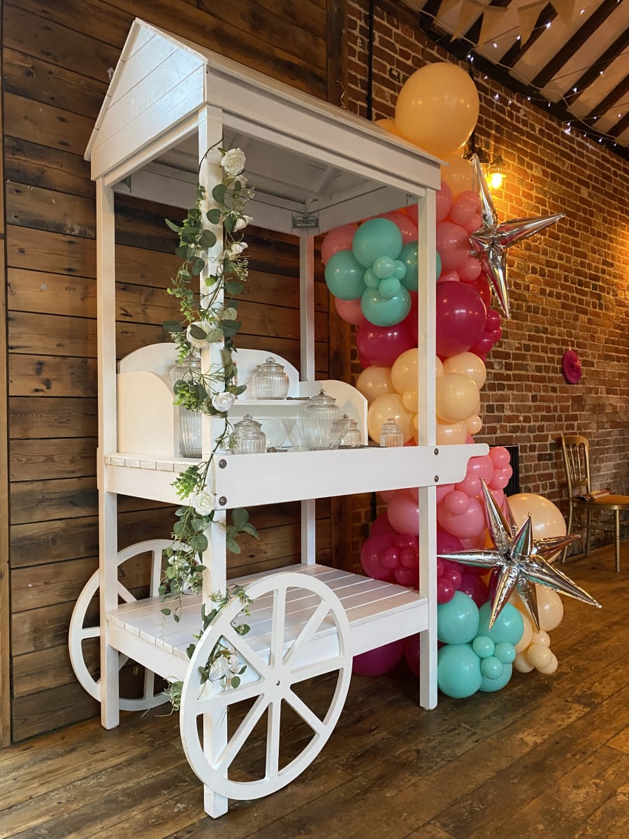 The sweet cart is dry hire only and you will need to supply your own sweets and treats to fill the jars