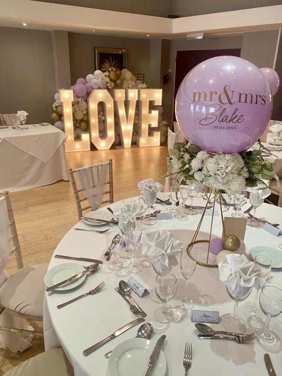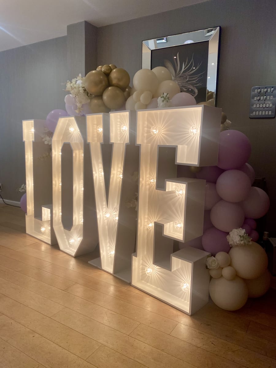 • 4ft Light up LOVE letters with a full balloon display set up behind